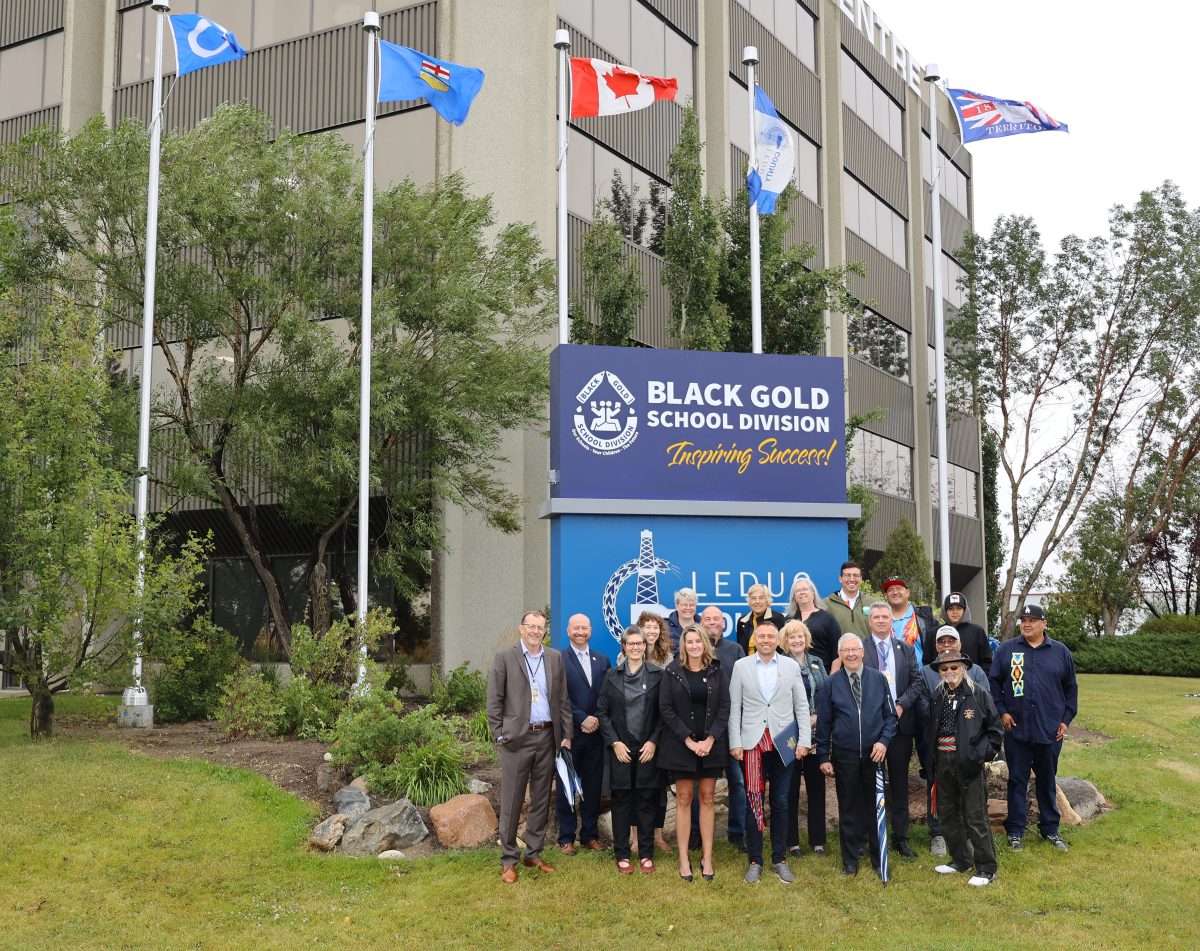 “Today is an exciting day for the people of Black Gold, as they take a healthy risk in acknowledging the rich history of the Indigenous peoples of this area,” said Elder Cliff Cardinal from the Saddle Lake Cree Nation, which is part of Treaty 6. “Today’s flag raising is an act of reconciliation that will resonate in the future for generations to come.”